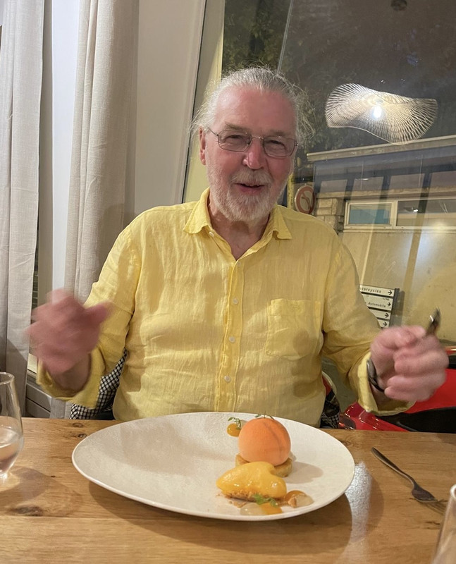 The apricot dessert was the star for Robert as the photo shows. The fondant shell was flavoured with dried apricots and inside a light delicate mousse surrounded an apricot puree centre. It looked and tasted superb and was accompanied by a refreshing sorbet.
