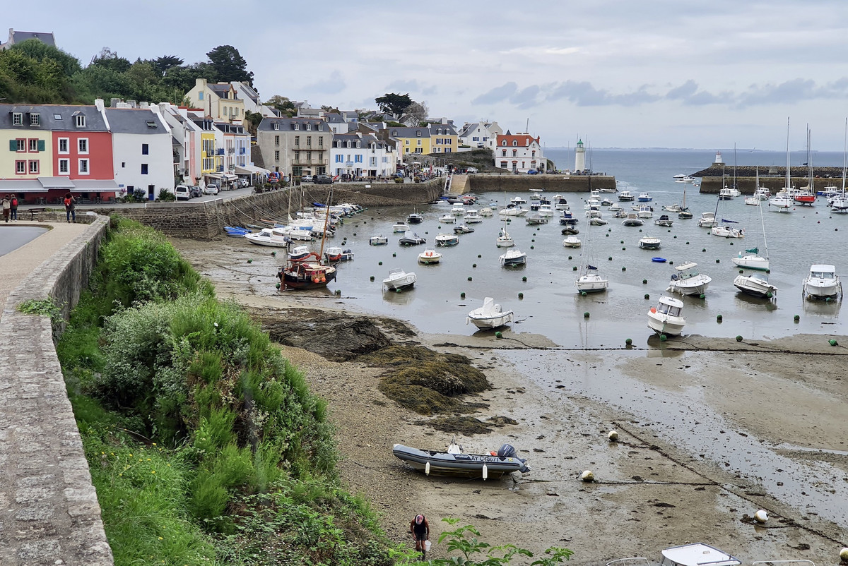After the boat we had three days in La Rochelle, a lovely city deserving more time, then drove north to Brittany, ending up on La Belle Ile. A very appropriate name. It’s the largest of Brittany’s islands and a short ferry ride from Quiberon (or a longer one from Vannes). Its wild west coast with cliffs and jagged rocks contrasts with the beaches of the east and its 85km coastal trail attracts lots of walkers. The circumnavigations takes five days, but the excellent bus service means lazy walkers like us can unwind with a short stroll followed by lunch at a restaurant. We stayed in the main town of Le Palais and our longest bus journey was 25mins to Locmaria where we enjoyed a delightful lunch at Le Suet. It was only 12mins north by bus, to the charming village of Sauzon. Its port is lined with seafood restaurants including Cafe de la Cale, which offers a delicious, bargain-priced lunch menu at 23€ for two courses (27€ for 3 courses).